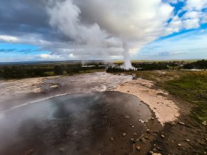 09:00 Afgang på dagens rute. Vi kører ind midt på øen, og overnatter ved KerlingerFjæll. Vi stopper ved Geysir og Gullfoss undervejs. Campen har et termisk bad.