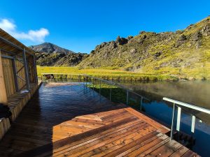 09:00 Afgang på dagens rute Vi kører henover Hekla med forrygende offroad, videre til Landmannalauga, hvor der er mulighed for at bade i de varme kilder. Herefter mod hotellet lidt inde på øen