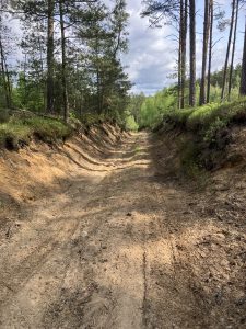 Skovene rummer et tæt netværk af veje og spor – nogle er lette, mens andre er virkelig krævende. På kortet er de ofte markeret ens, hvilket gør navigationen udfordrende. Vi har besøgt området fire gange og bygger videre på vores spor og erfaringer hver gang.